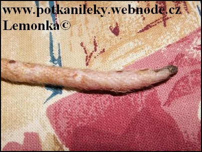 - Pokud je stržená kůže ze špičky ocasu, zbytek při dobré péči zaschne a odpadne (potkani mají výbornou schopnost regenerace)